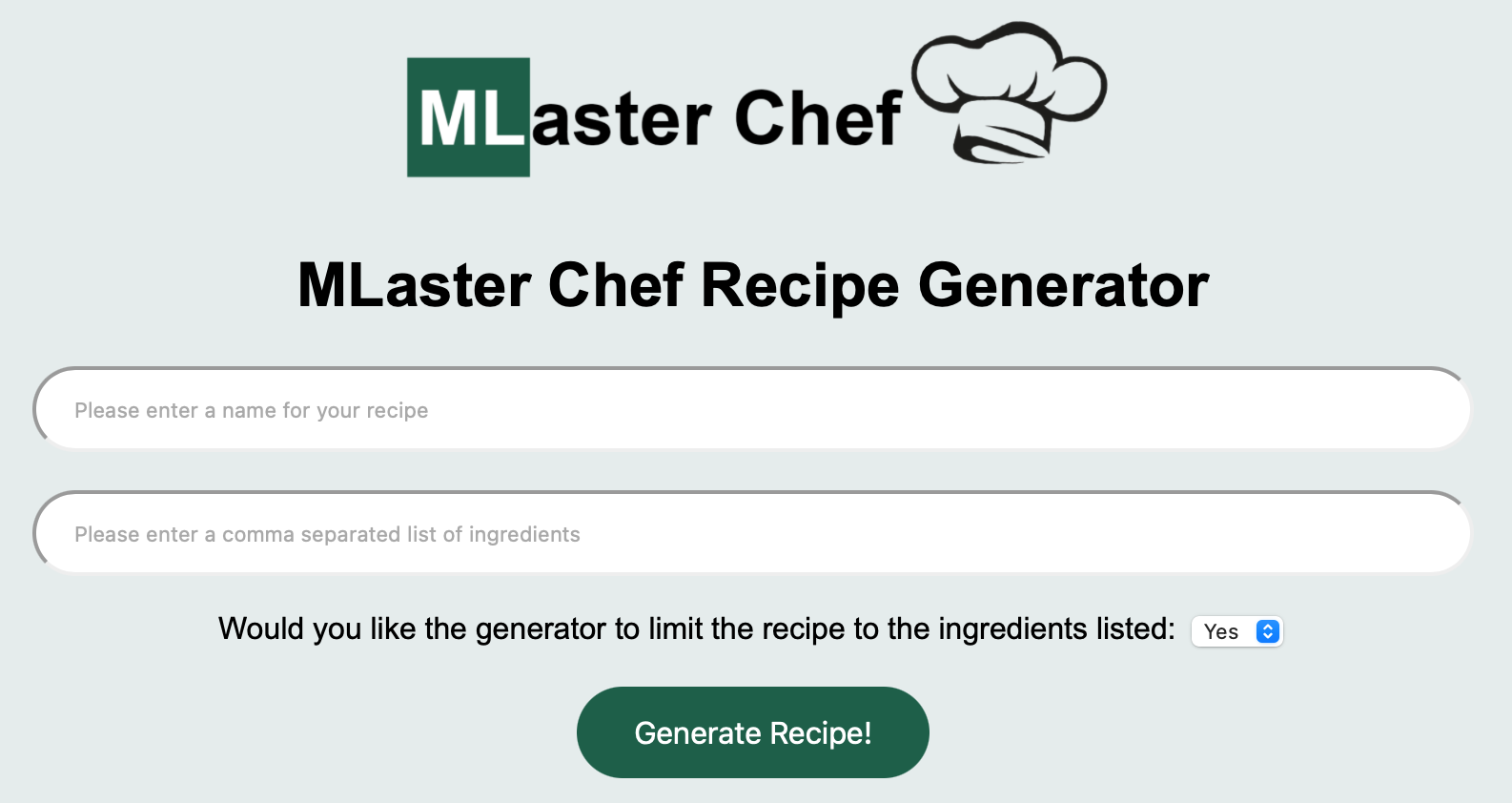 A Django based web app built in collaboration with a machine learning engineer. Takes user input of ingredients and generates a recipe based on a model trained on a database of recipe.